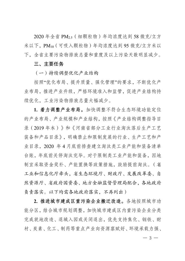 近日,河南省污染防治攻堅(jiān)戰(zhàn)領(lǐng)導(dǎo)小組辦公室印發(fā)《河南省2020年大氣污染防治攻堅(jiān)戰(zhàn)實(shí)施方案》(以下簡稱《方案》)。方案提出: