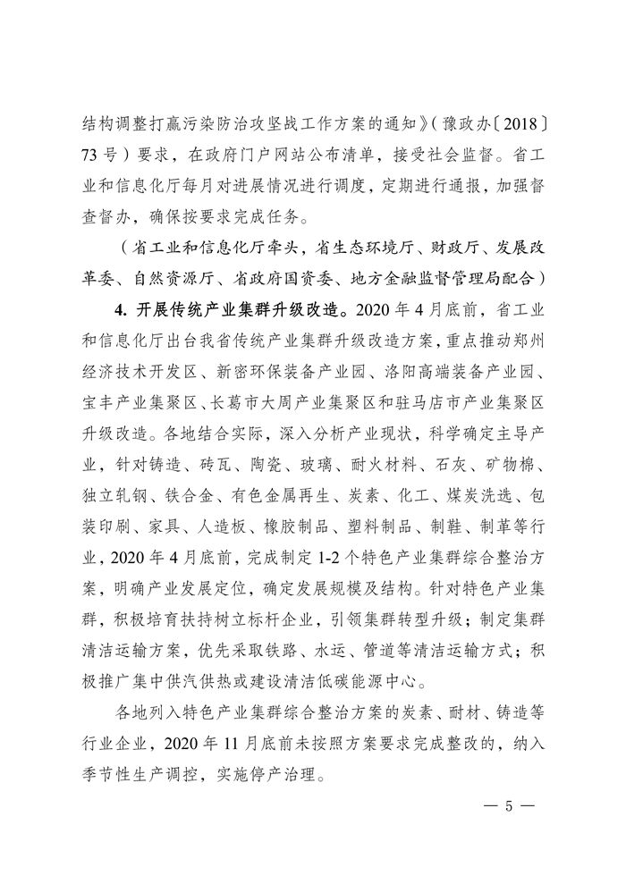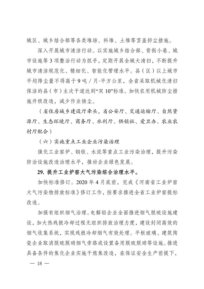 5、2020年4月底前,完成《河南省工業(yè)爐窯大氣污染物排放標(biāo)準(zhǔn)》修訂工作,推進(jìn)工業(yè)爐窯提標(biāo)改造。